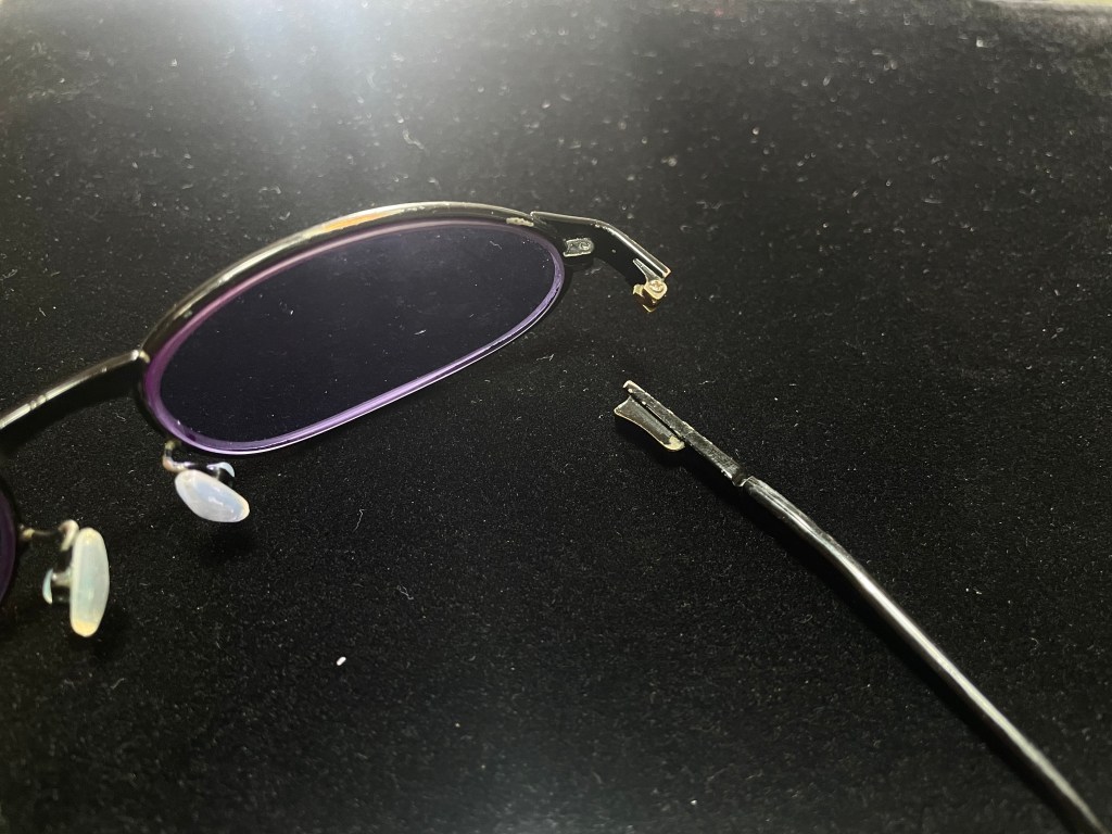 先日20年くらい愛用していた眼鏡のテンプルがバネのところからポッキリと折れました。